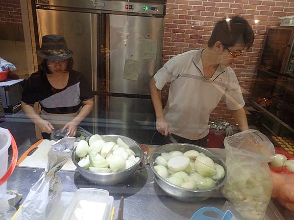 味道辛辣的洋蔥,要製成洋蔥酥的內餡,總是要淚流滿面才能完成挑蔥、揀蔥、剝蔥、洗蔥、切蔥等前置作業,再用慢火熬煮,如此才能慢慢釋放出膠質和天然的香氣,如果用大火煮可以很快就熟,卻完全沒有綿潤的口感,熬煮時邊煮邊攪動以防燒焦,歷經六、七個小時之後,才能將生鮮的洋蔥,製成又軟又香的可口內餡。